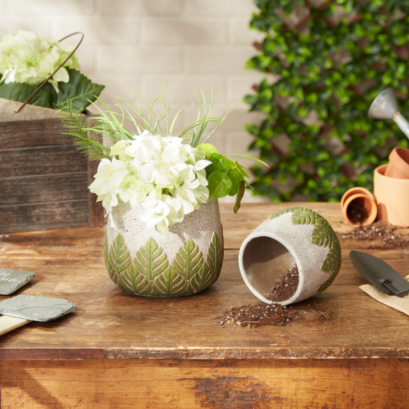 GREEK LEAF CEMENT FLOWER POT SET/2 GREEK LEAF CEMENT FLOWER POT SET/2 GREEK LEAF CEMENT FLOWER POT SET/2 GREEK LEAF CEMENT FLOWER POT SET/2 GREEK LEAF CEMENT FLOWER POT SET/2