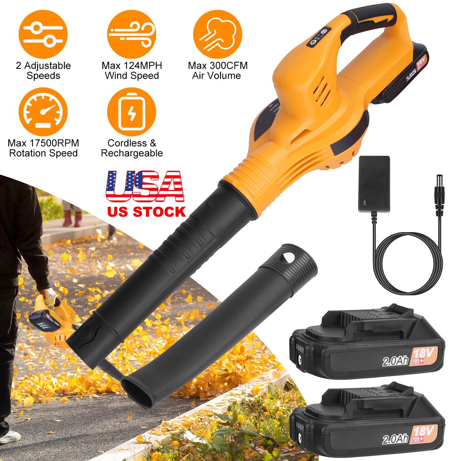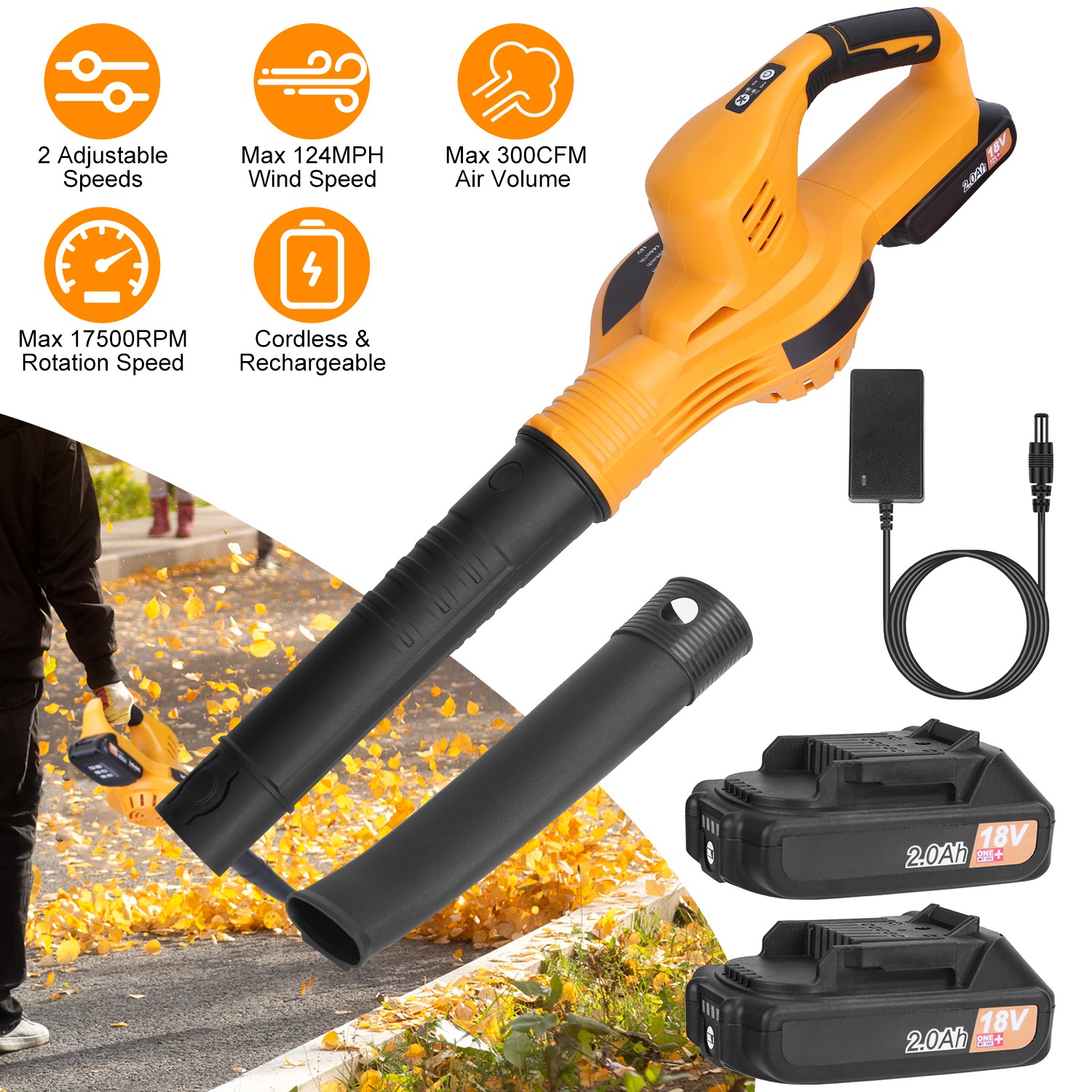 Cordless Leaf Blower Handheld Electric Battery Powered Air Blower Max 124MPH 300CFM with 2 Adjustable Speeds 2Pcs 18V 2000mA Battery and Charger for Y Cordless Leaf Blower Handheld Electric Battery Powered Air Blower Max 124MPH 300CFM with 2 Adjustable Speeds 2Pcs 18V 2000mA Battery and Charger for Y Cordless Leaf Blower Handheld Electric Battery Powered Air Blower Max 124MPH 300CFM with 2 Adjustable Speeds 2Pcs 18V 2000mA Battery and Charger for Y Cordless Leaf Blower Handheld Electric Battery Powered Air Blower Max 124MPH 300CFM with 2 Adjustable Speeds 2Pcs 18V 2000mA Battery and Charger for Y Cordless Leaf Blower Handheld Electric Battery Powered Air Blower Max 124MPH 300CFM with 2 Adjustable Speeds 2Pcs 18V 2000mA Battery and Charger for Y
