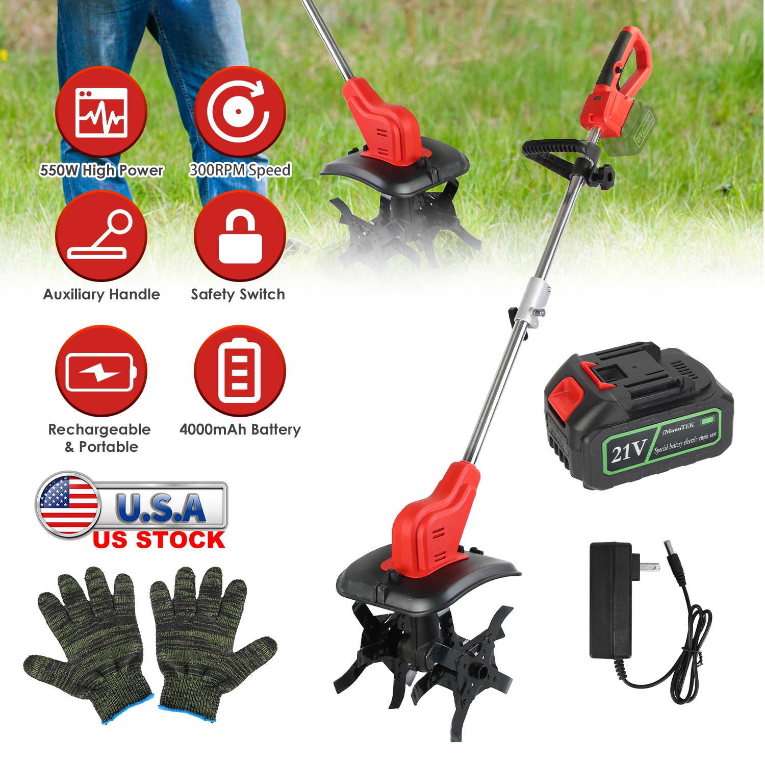 21V Electric Cordless Tiller Cultivator Powered Garden Tiller with 4 Blades 16 Steel Tines 550W 300RPM 4000mAh Battery Tilling 9-in Width & 9-in Depth 21V Electric Cordless Tiller Cultivator Powered Garden Tiller with 4 Blades 16 Steel Tines 550W 300RPM 4000mAh Battery Tilling 9-in Width & 9-in Depth 21V Electric Cordless Tiller Cultivator Powered Garden Tiller with 4 Blades 16 Steel Tines 550W 300RPM 4000mAh Battery Tilling 9-in Width & 9-in Depth 21V Electric Cordless Tiller Cultivator Powered Garden Tiller with 4 Blades 16 Steel Tines 550W 300RPM 4000mAh Battery Tilling 9-in Width & 9-in Depth 21V Electric Cordless Tiller Cultivator Powered Garden Tiller with 4 Blades 16 Steel Tines 550W 300RPM 4000mAh Battery Tilling 9-in Width & 9-in Depth