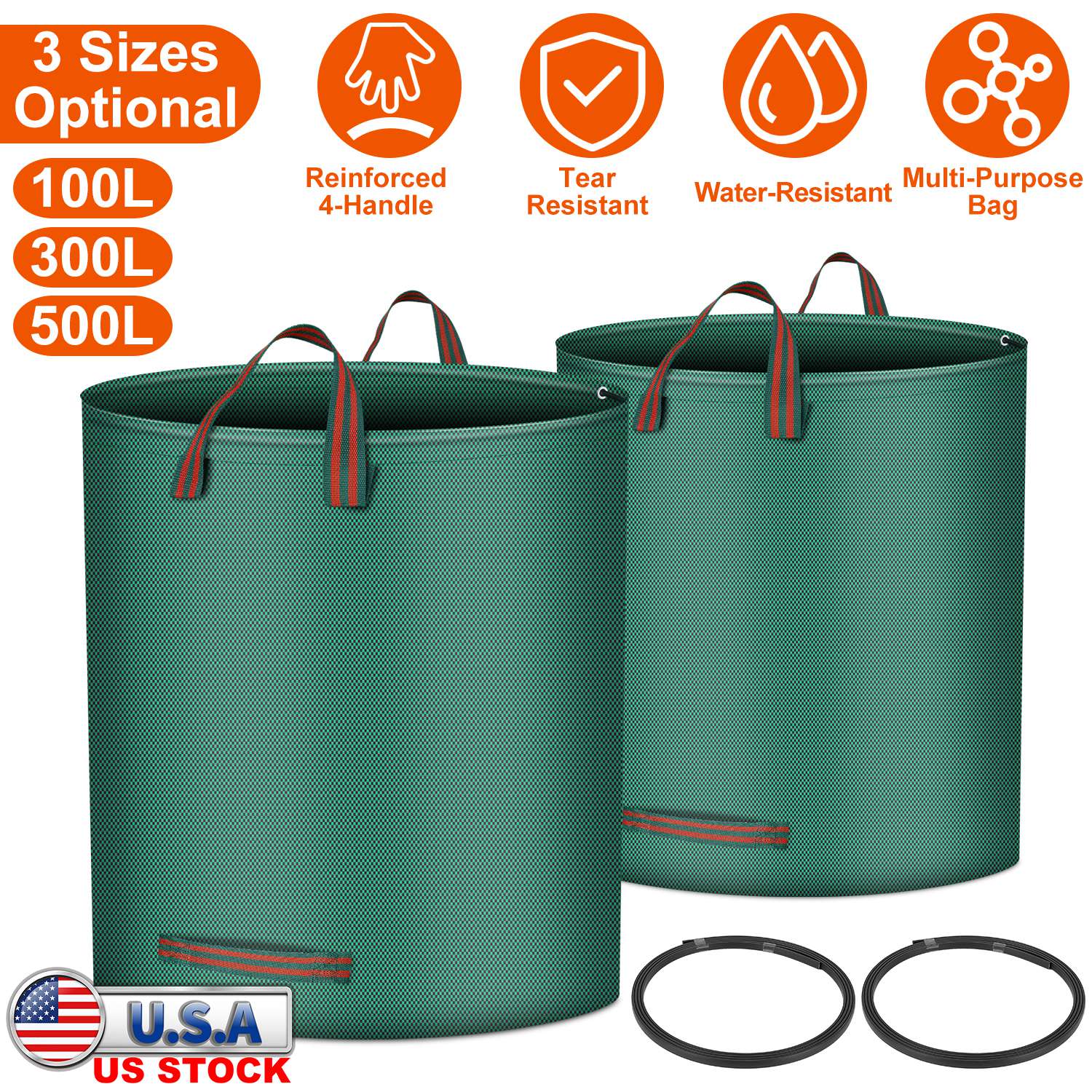 Home > 2Pcs 132.09Gallons Round Garden Waste Bags Waterproof Reusable Grass Rubbish Leaf Sacks Home Garden Lawn Yard Trash Bags w/ 4 Handles