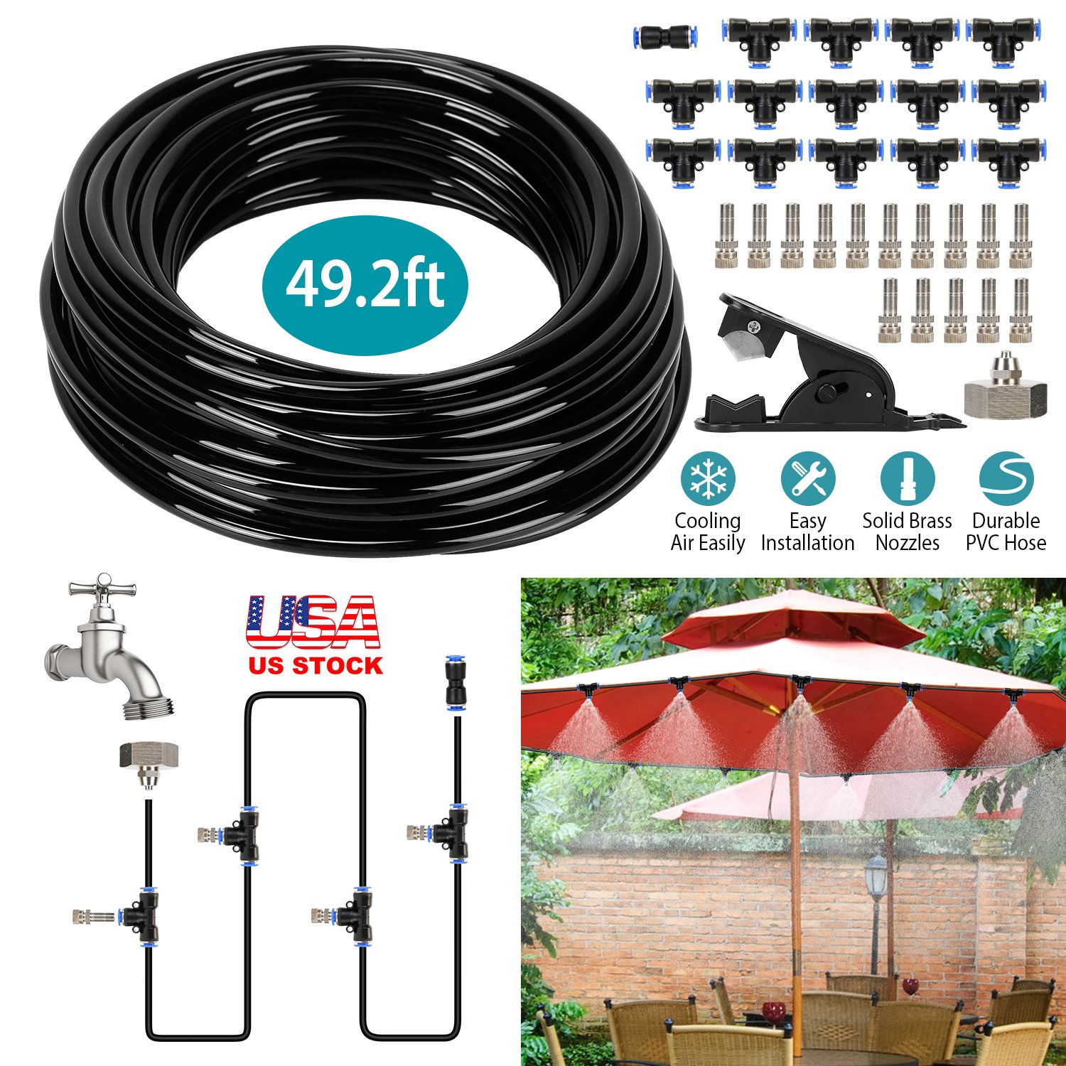 49.2ft Misting Cooling System Water Mister Nozzles Set Garden Irrigation w/ 5 Mist Nozzles for Patio Garden Greenhouse