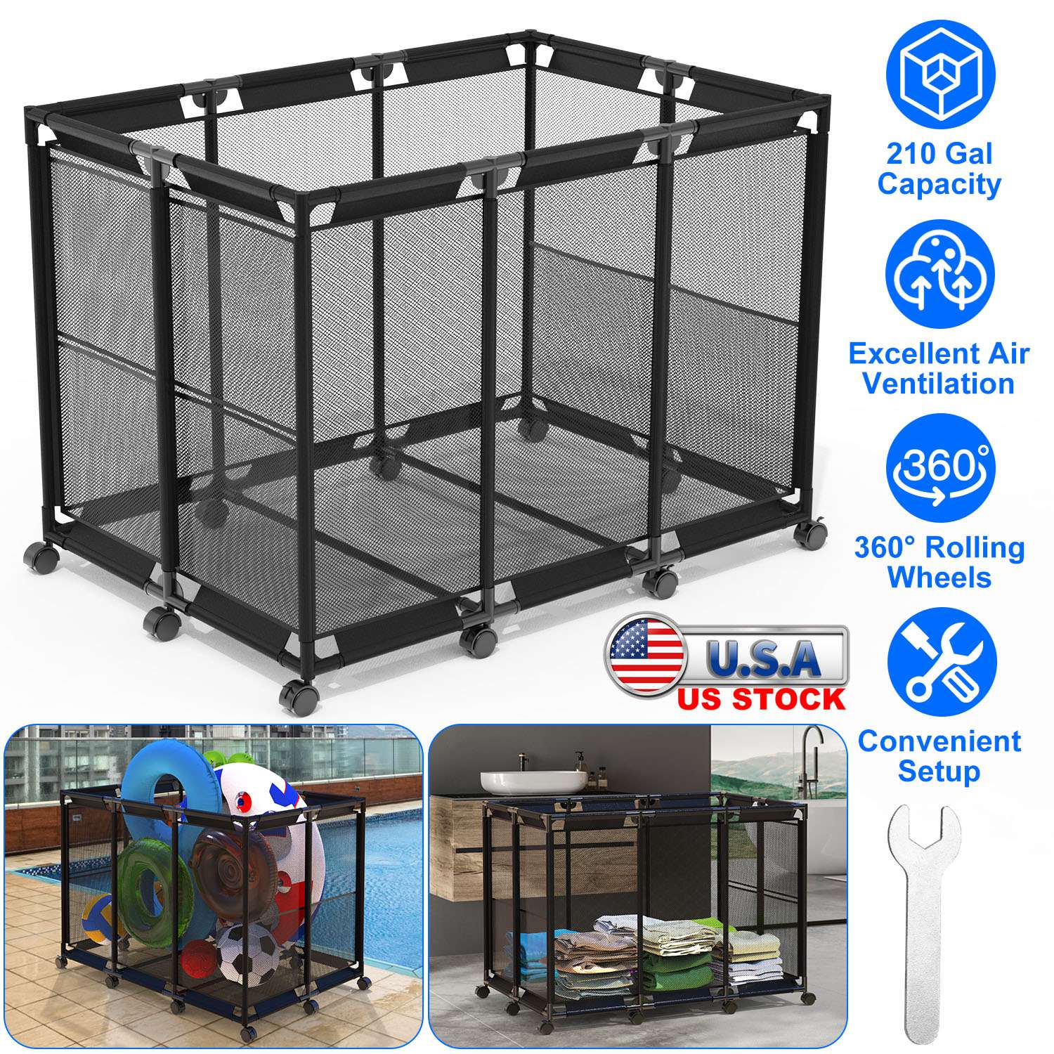 Home > 210 Gallon Pool Storage Bin Swimming Pool Noodles Holder 48.4x30.1x33.3in Float Organizer Rolling Mesh Storage Basket with Lockable Wheels