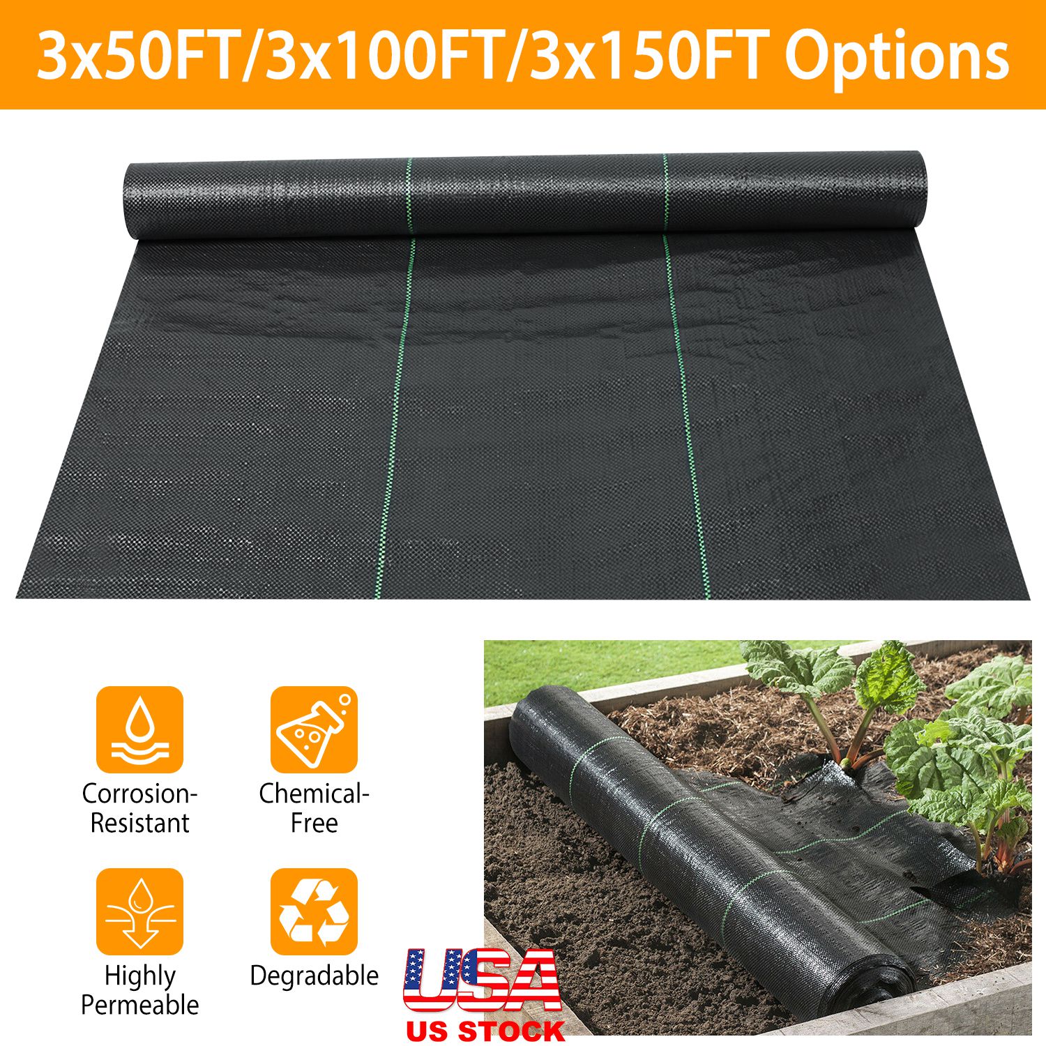 3x100FT Weed Barrier Landscape Fabric Weed Control Garden Block Gardening Mat Fabric Woven Ground Cover Earthmat