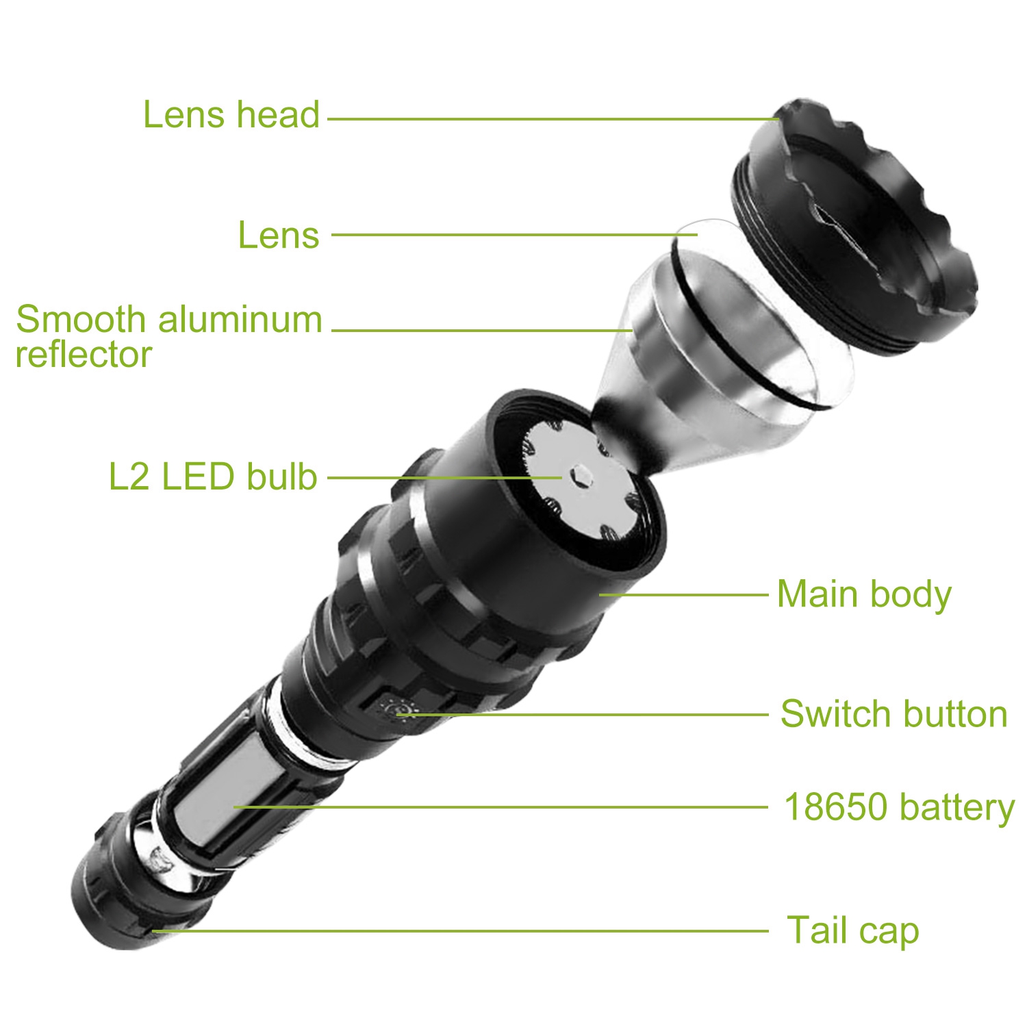 Equipping with upgraded LED bead and optical convex lens, our flashlight boasts bright, clear and long-ranged illumination. There are 5 modes (High / Medium/ Low / Strobe /SOS) of lighting, can meet all your lighting needs. With the remote switch and picatinny mount, it will be a good choice for hunting or other tactical activities.