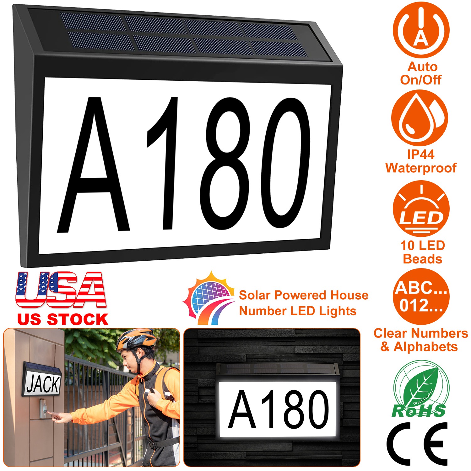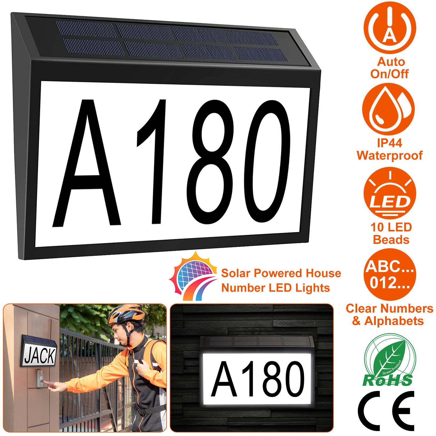 Do you often encounter these problems: the courier or delivery person can't find your address and lose the package, and friends can't find your home when they visit? Our solar powered address sign light can solve your problem easily. Our house number plate adopts solar technology and is equipped with large-size numbers, so that your address sign can be clearly seen during the day or at night, so that postmen, visitors or other emergency situations can easily find your house, which is a good helper to guide. Address plaque and stickers are all waterproof design, which can work as usual in the bad weather of rain and snow outdoors.