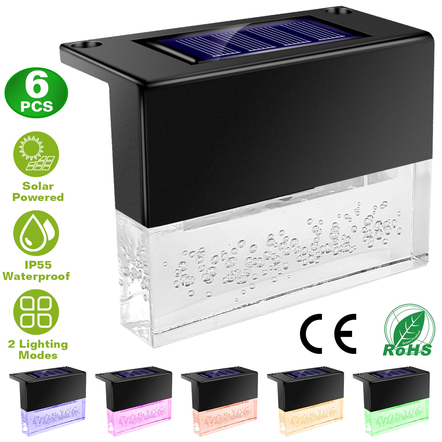Home > 6Pcs Solar Powered Deck Lights Outdoor Acrylic Bubbles Decorative Step Fence Lamp IP55 Waterproof Warm White/Color Changing Night Lights For Patio Gar