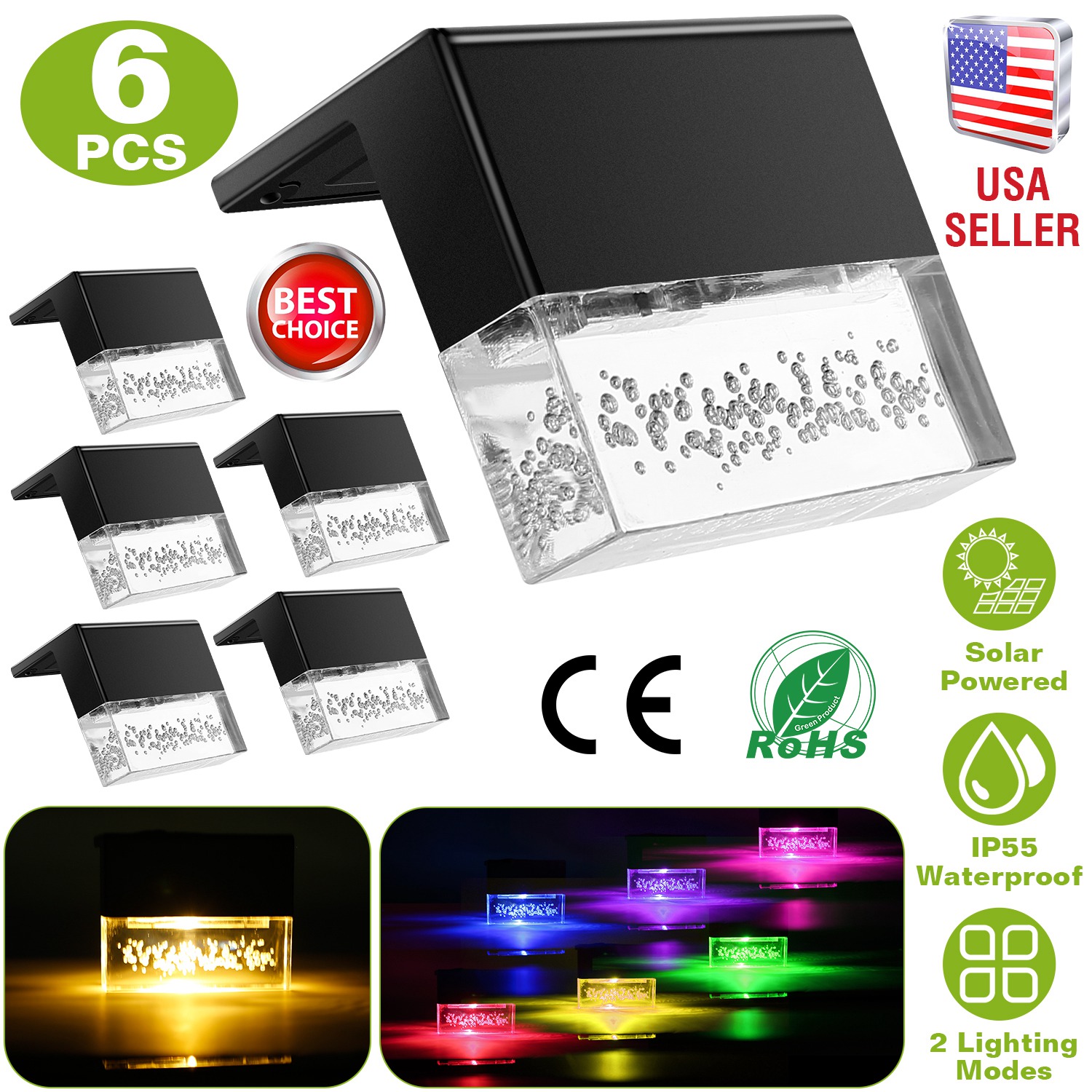 6Pcs Solar Powered Deck Lights Outdoor Acrylic Bubbles Decorative Step Fence Lamp IP55 Waterproof Warm White/Color Changing Night Lights For Patio Gar
