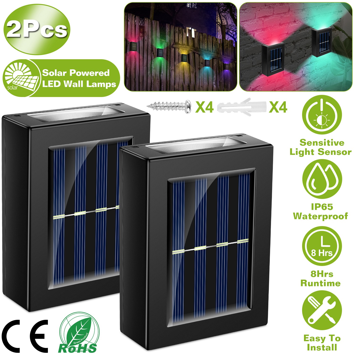 Inbuilt with smart light control, auto charge during the day and auto lighting at night; IP65 Waterproof performance and sturdy ABS PC materials, withstands water-resistant, rust-proof, dust-proof and moisture-proof. Easy to install, no electricity bill, no wiring. 8Hrs illuminates and never feel pitch darkness when you step stairs at front door or garden. Ideal for illuminating and decorating outdoor stairs, fences, decks and more.