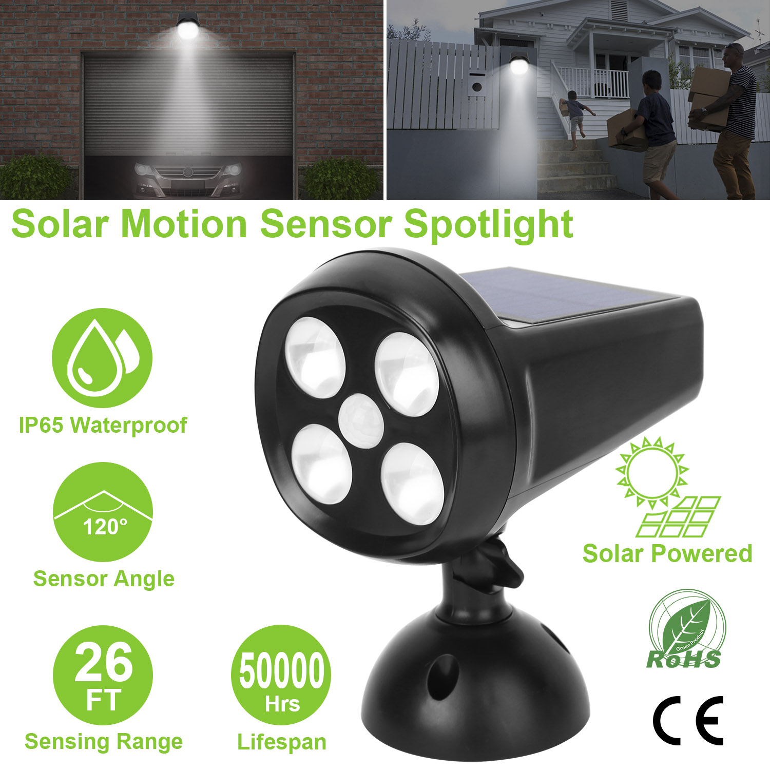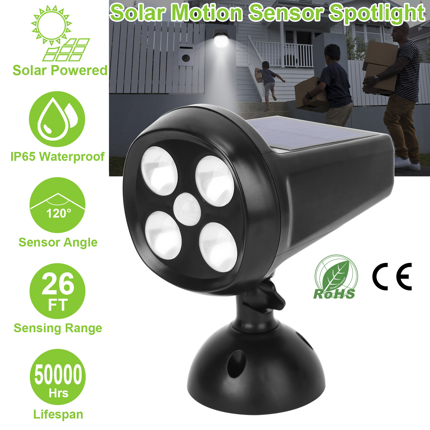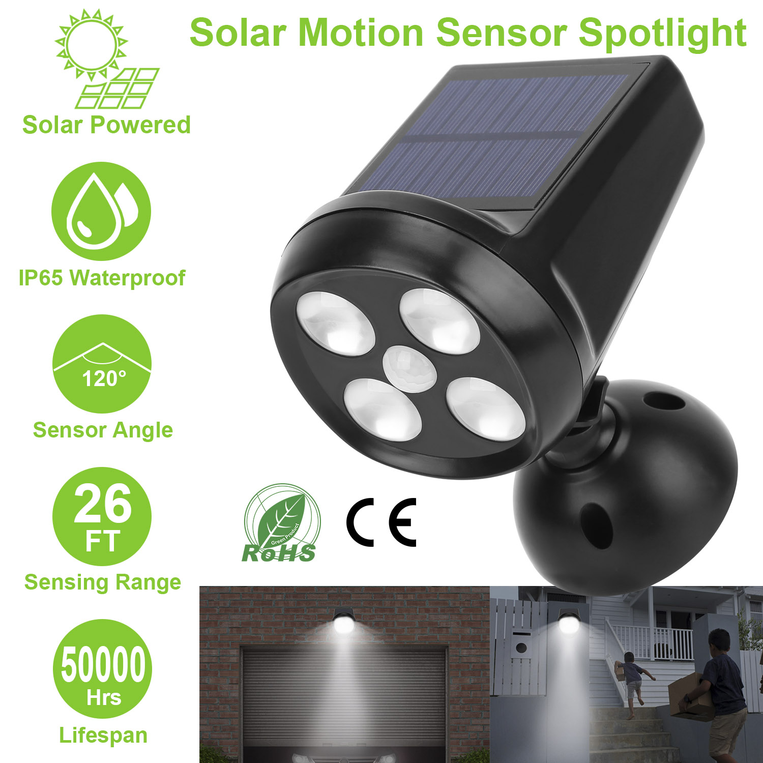 Our Solarek Solar Light offers an optimal solution for illuminating at dark night, which features upgraded PIR motion sensor, inbuilt bright 4LEDs, wide illumination angle, 1200mAh rechargeable battery, IP65 Waterproof and heatproof. It can be easily installed without fear of environmental damage and fully charged about 8 hours under the sunlight. During the day the solar light will automatically switch off to save energy; and it will turn on when motion is detected within 20ft in darkness or at night, so you can find your way home. Use our LED Sensor light for your garden, backyard, deck, porch, patio, pond, veggie patch, driveway, or any outdoor location that needs a light.