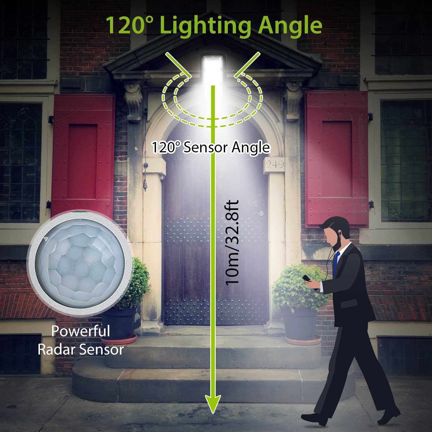 Home > Solar Street Path Light Outdoor 180LEDs Radar Sensor Remote Control Wireless Lamps IP65 Waterproof Lighting For Garage Front Door Garden Pathway