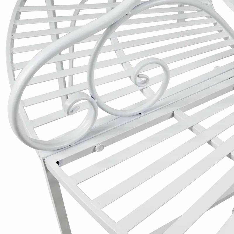 This Half-Circle White Metal Outdoor Patio Garden Tree Bench adds a touch of elegance to your garden or patio, creating an inviting spot for two to sit and enjoy nature. Made from powder-coated aluminum, this white bench showcases intricate detailing and fine craftsmanship. It has a weight capacity of 250 lbs. and does not require any cushions. The bench is foldable for easy storage and is both paintable and stainable to match your outdoor decor. Enjoy a quick and easy setup, and experience delightful conversations with your loved ones on this beautiful outdoor bench.